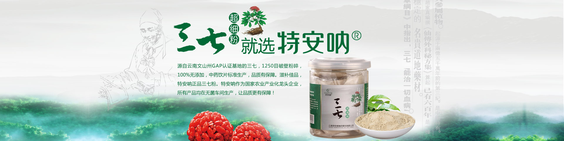 云南特安吶制藥股份有限公司(以下簡稱“公司”)成立于1994年5月。2015年7月,云南省康旅控股集團有限公司旗下的云南三七科技有限公司増資擴股,公司成為立足文山、專注三七開發(fā)的國有控股企業(yè)。公司成立以來,緊緊依托文山得天獨厚的三七資源優(yōu)勢,全力打造三七產業(yè)。經過近30年的發(fā)展,公司構建了以“產品研發(fā)基地、三七GAP種植基地、中藥材加工基地、產品生產基地、物流倉儲基地”和“三七國際交易...